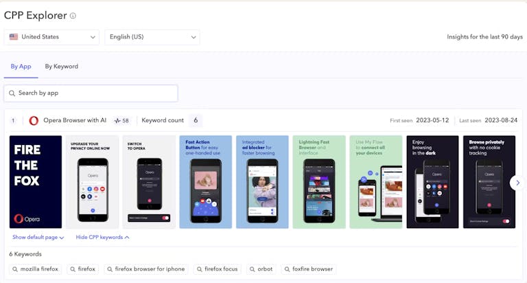 Curious to see what the top apps in your category are up to when it comes to custom product pages? Schedule a demo with our team and we’ll show you what insights you can uncover with AppTweak’s CPP Explorer.