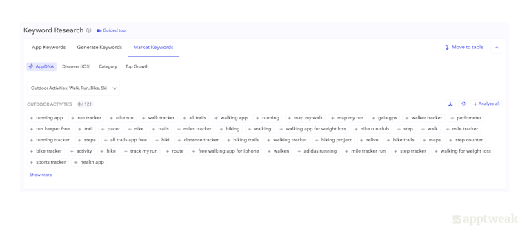 If you’re still looking for more keyword inspiration, try our Market keywords suggestions. These suggestions are especially powerful as they include the most relevant keywords for your app based on its specific market.