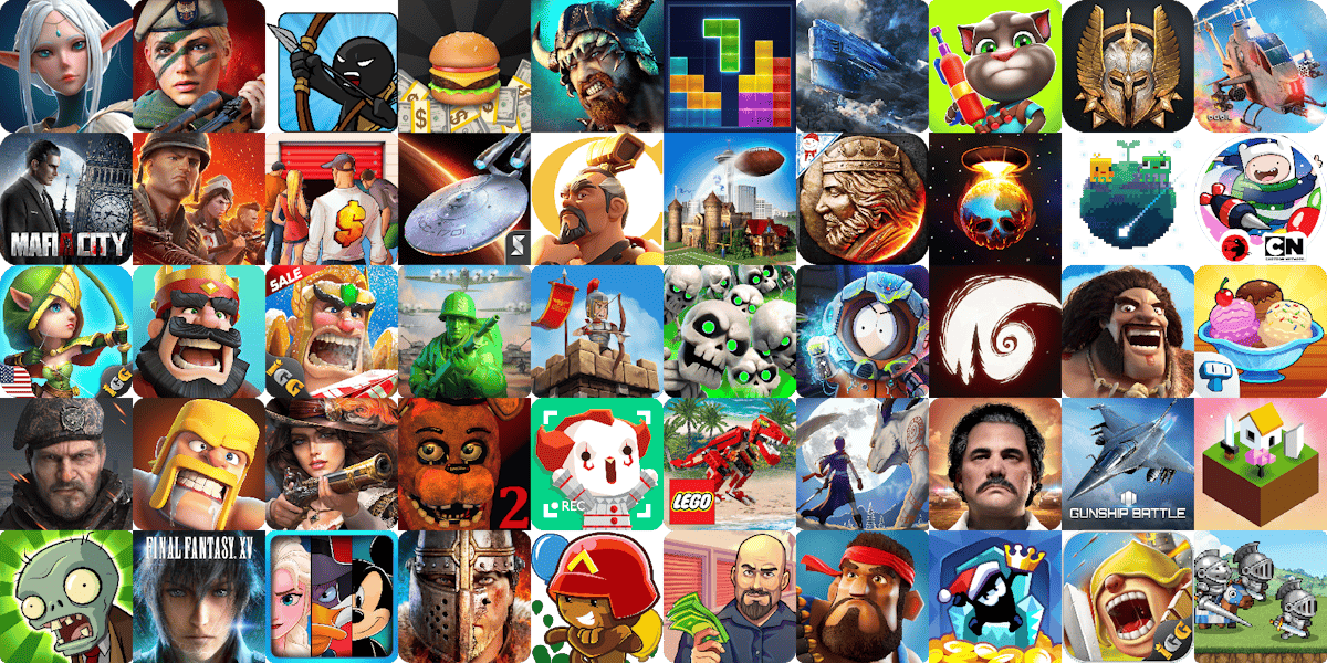 Icon collage of the top 50 games in the Games category on the App Store, US. Source: AppTweak