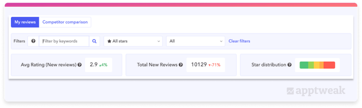 On AppTweak, we observed many moderate and negative reviews for Duolingo. The most-repeated words in these reviews were “new” and “update,” indicating dissatisfaction with recent updates.