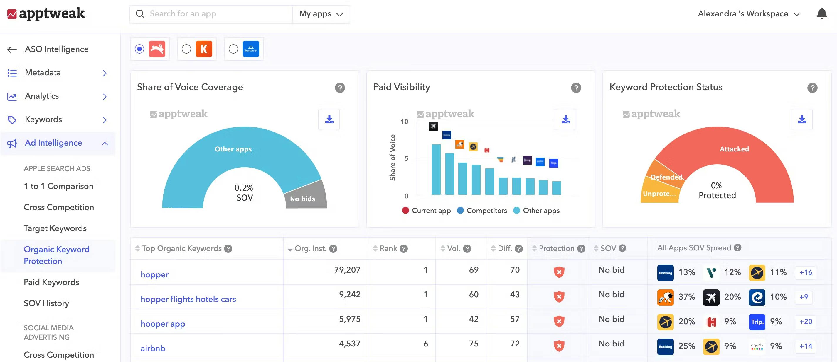 Use Organic Keyword Protection to discover the apps & games bidding on your brand name or top-performing organic keywords.