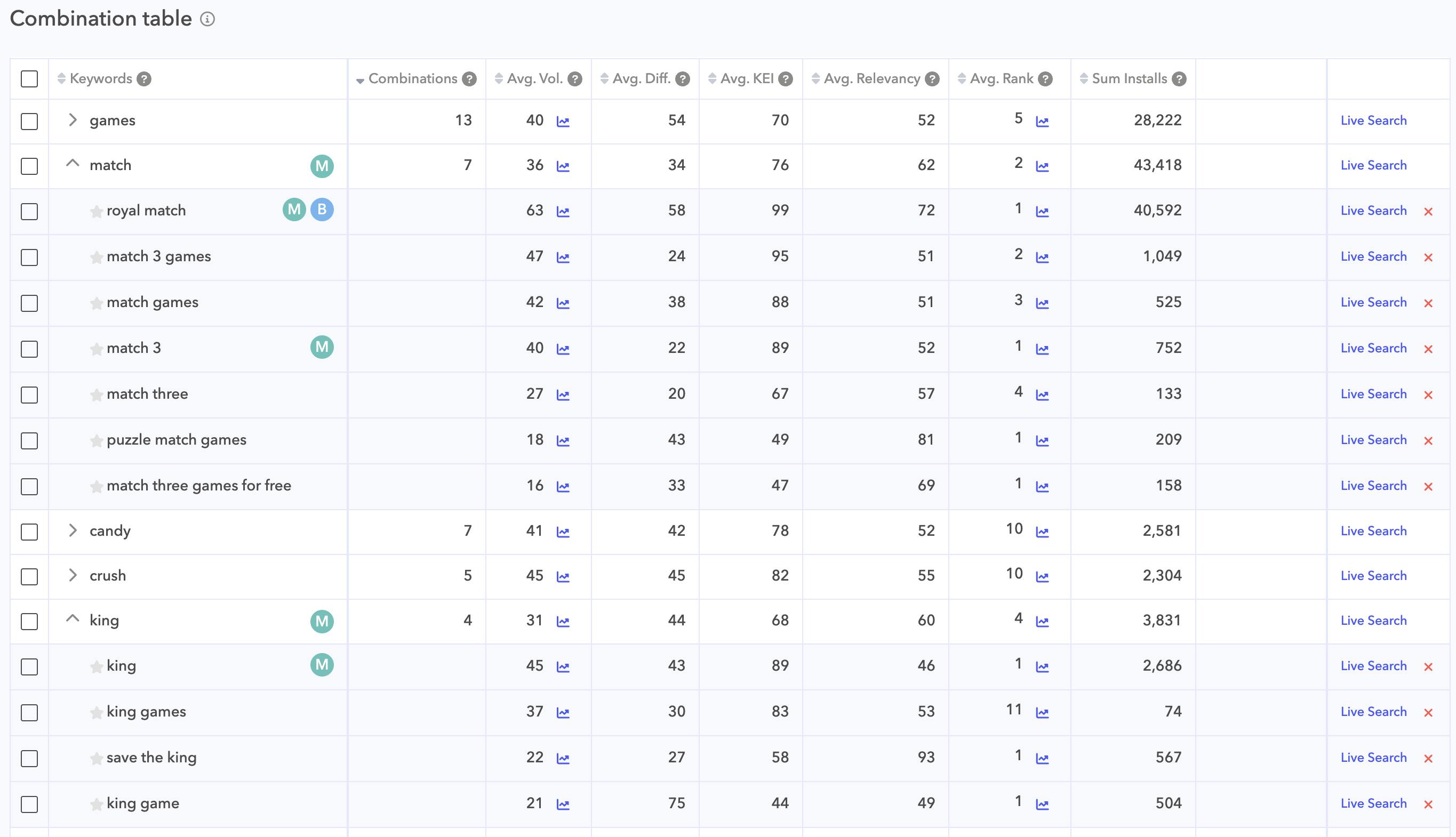 Merge & combine words to find new long-tail keyword opportunities you can target in your app’s metadata.