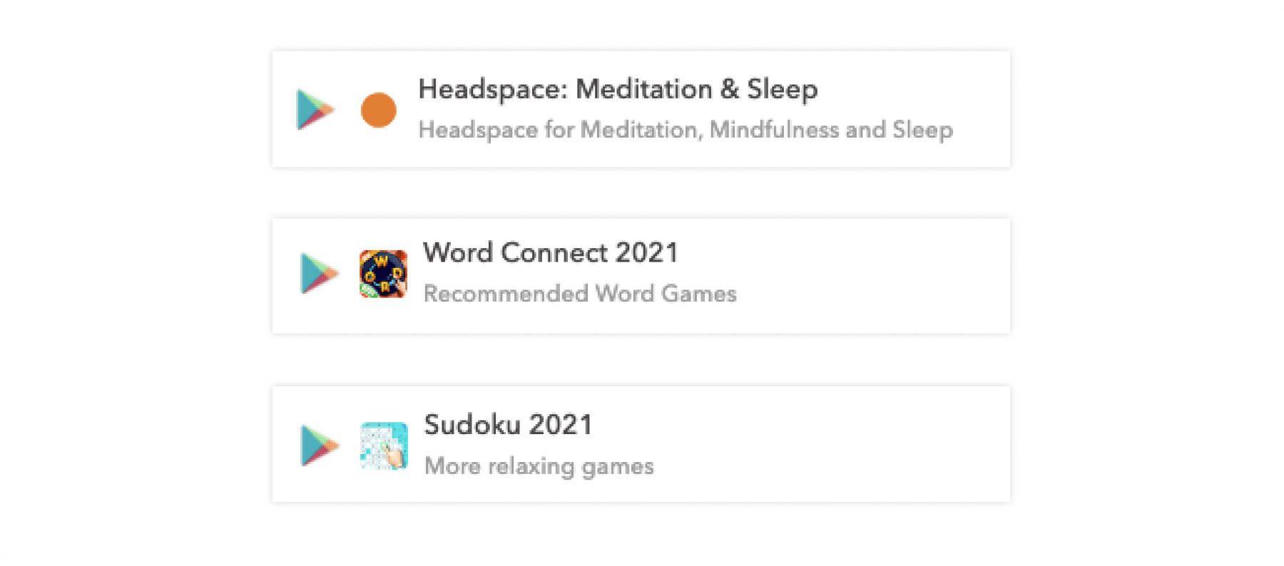 Google Playでは、アプリアイコンは一般的なキーワード検索の検索結果で表示される唯一のグラフィックアセットです。Google Play用にアイコンをデザインする際には、視聴者を圧倒しないようにできるだけ説明的にするようにしてください。