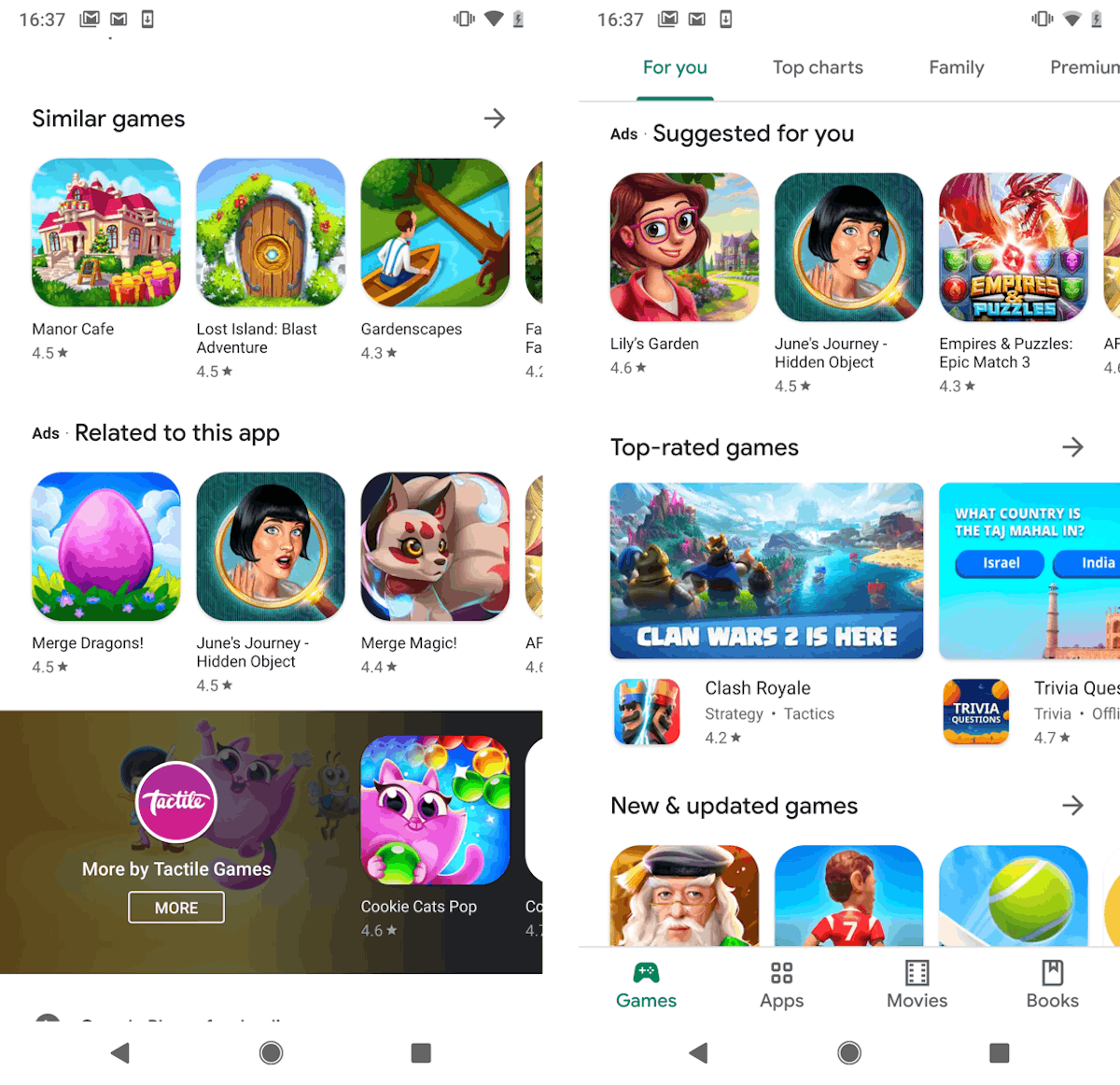 1. Playストアではゲームにのみタグが表示され、アプリにはカテゴリのみが表示されます。