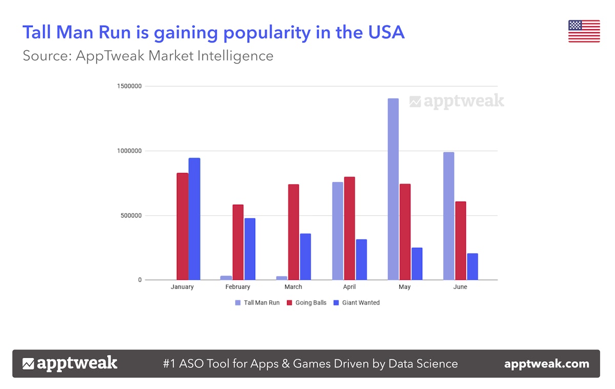 Tall Man Runは米国で人気を集めています。出典:AppTweak Market Intelligence