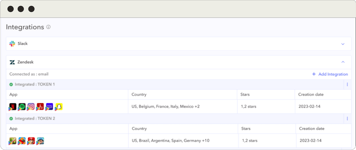 통합 설정하여 Zendesk, Slack, Salesforce에서 앱 스토어 리뷰를 받고 답변할 수 있습니다. 또한 Zendesk에서 직접 GPT-4 답변을 활용하는 것과 같이 타사 플랫폼에서 다양한 리뷰 관리 기능을 활용할 수도 있습니다.