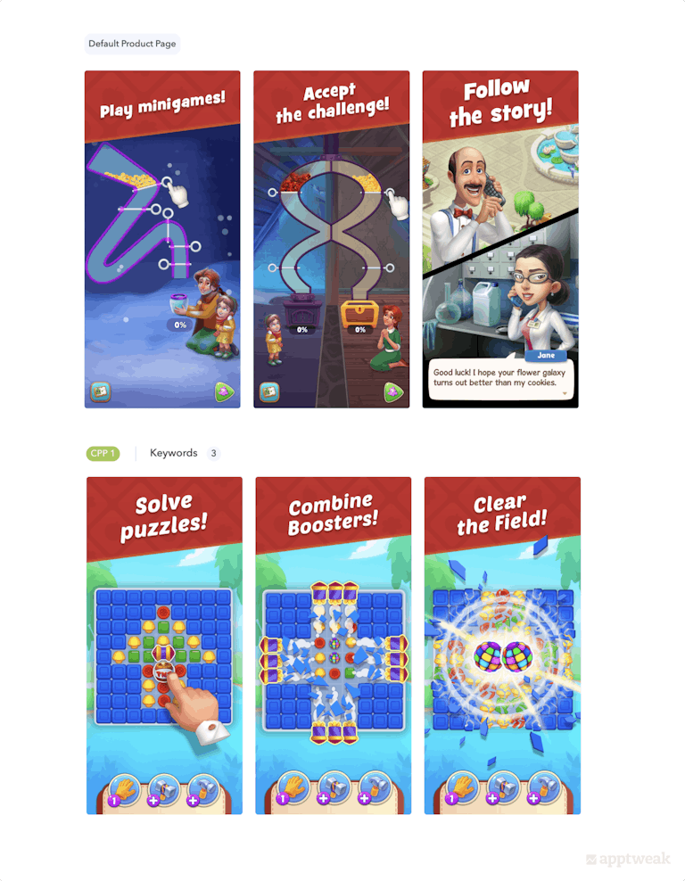 In AppTweak, you can examine your competitor’s custom product pages in our CPP Explorer App Store examples article.