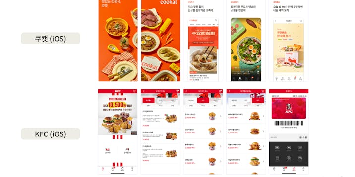 쿠캣과 KFC의 스크린샷 예시(App Store、대한민국)