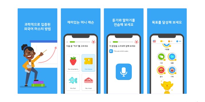 Duolingo 스크린샷의 예시(App Store、대한민국)