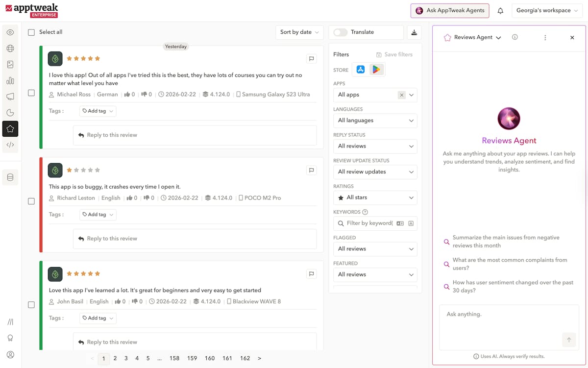 Get answers to your ASO & AppTweak questions from our team (tutorials, guides, chat box).