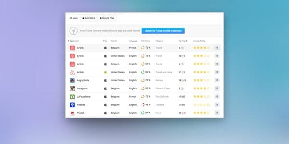 如果您正在处理 iOS 应用,您可以输入您的 iTunes Connect 凭据,并直接在 AppTweak 上同步您的应用。您的应用将自动添加到您的个人仪表盘。